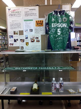 愛媛プロスポーツアーカイブズでは、11月24日(日)にアルウィン(松本平広域公園総合球技場)で開催される松本山雅FC対愛媛FCの対戦に合わせて、松本山雅FCと市立図書館に同クラブのコーナーがある塩尻市の観光・文化を紹介します。試合観戦、観光のご参考にお役立てください! 1 期 間:平成25年11月13日(水)〜11月28日(木) ※11月24日(日)に松本山雅FC−愛媛FC戦が開催。 2 展示内容: ・松本山雅FCの紹介 ・塩尻市立図書館と松本山雅FCとの連携事業の紹介 ・塩尻市の観光情報 ・観光パンフレット など 3 場 所:愛媛県立図書館3階一般図書室 愛媛プロスポーツアーカイブズ 4 主 催:愛媛県立図書館 5 協 力:塩尻市立図書館 関連リンク(クリックするとリンク先へ移動します) 松本山雅FC公式サイト 塩尻市立図書館公式サイト ![]() ![]() 塩尻の物産品の展示を開始しました(11月21日) |
